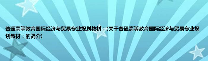 大家好,普通高等教育国际经济与贸易专业规划教材:,关于普通高等教育国际经济与贸易专业规划教材:的简介很多人还不知道,现在让我们一起来看看吧!