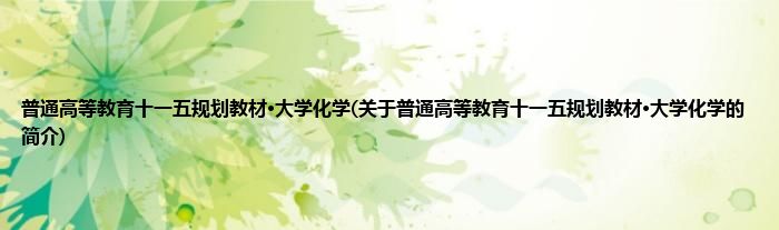 本文关于普通高等教育十一五规划教材·大学化学的简介就讲解完毕,希望对大家有所帮助。