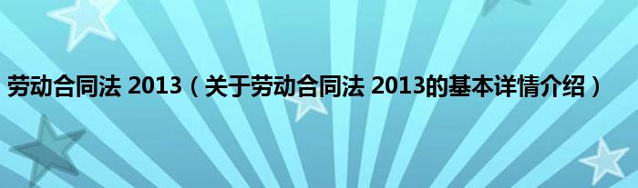 本文关于劳动合同法 2013的基本详情介绍就讲解完毕,希望对大家有所帮助。