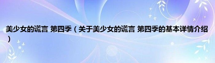 本文关于美少女的谎言 第四季的基本详情介绍就讲解完毕,希望对大家有所帮助。