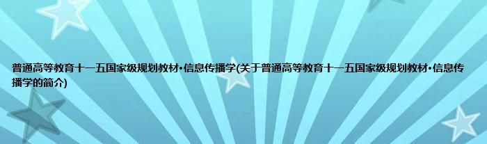 本文关于普通高等教育十一五国家级规划教材·信息传播学的简介就讲解完毕,希望对大家有所帮助。