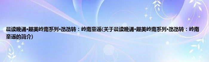 本文关于晨读晚诵·趣美岭南系列·氹氹转:岭南童谣的简介就讲解完毕,希望对大家有所帮助。