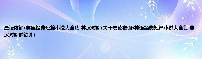 本文关于晨读夜诵·英语经典短篇小说大全集 英汉对照的简介就讲解完毕,希望对大家有所帮助。