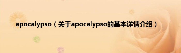 本文关于apocalypso的基本详情介绍就讲解完毕,希望对大家有所帮助。
