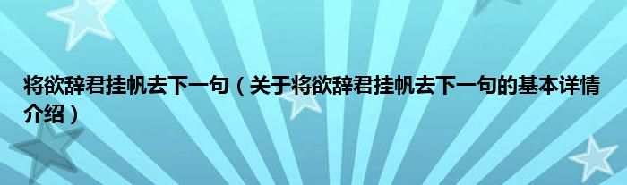 本文关于将欲辞君挂帆去下一句的基本详情介绍就讲解完毕,希望对大家有所帮助。
