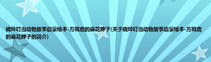1、 《晓玲叮当动物故事启蒙绘本-方斑鹿的麻花脖子》是2018年10月明天出版社出版的图书。