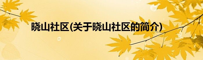 大家好,晓山社区,关于晓山社区的简介很多人还不知道,现在让我们一起来看看吧!