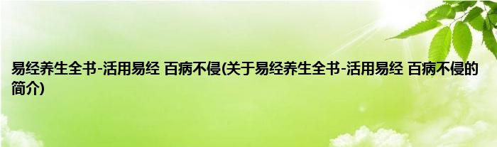本文关于易经养生全书-活用易经,百病不侵的简介就讲解完毕,希望对大家有所帮助。