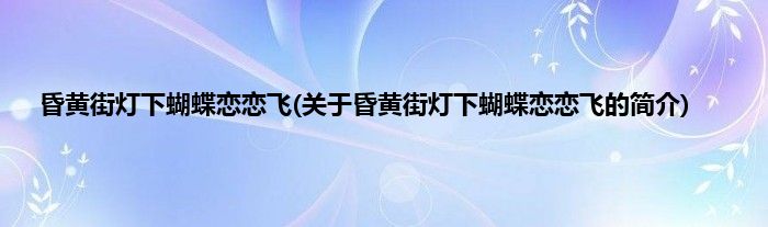 大家好,昏黄街灯下蝴蝶恋恋飞,关于昏黄街灯下蝴蝶恋恋飞的简介很多人还不知道,现在让我们一起来看看吧!
