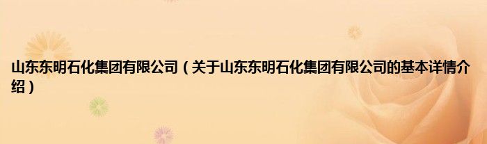 山东东明石化集团有限公司(关于山东东明石化集团有限公司的基本详情介绍)