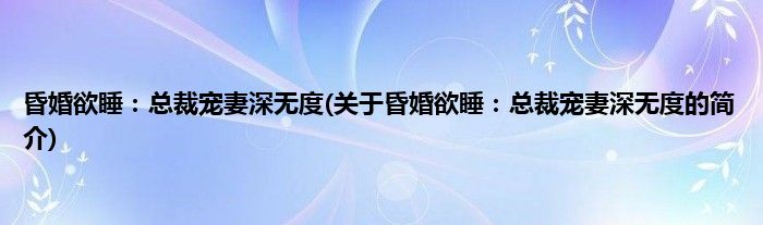 本文关于昏婚欲睡:总裁宠妻深无度的简介就讲解完毕,希望对大家有所帮助。