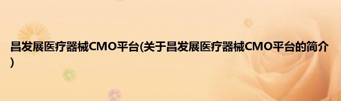 昌发展医疗器械CMO平台(关于昌发展医疗器械CMO平台的简介)