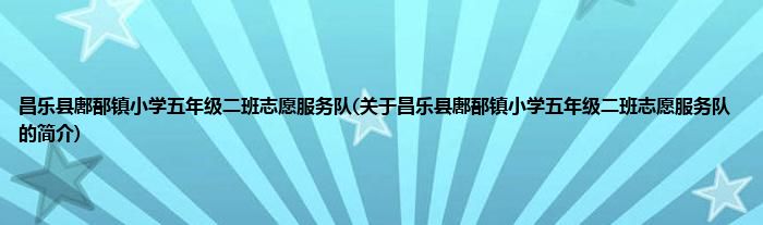 本文关于昌乐县鄌郚镇小学五年级二班志愿服务队的简介就讲解完毕,希望对大家有所帮助。