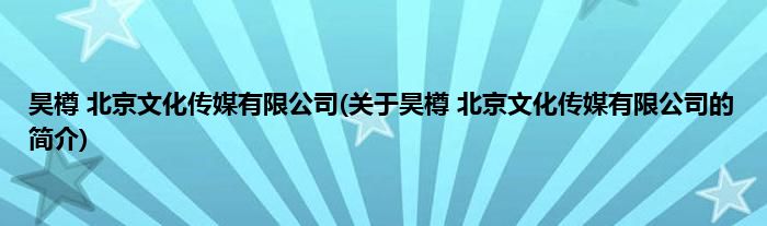 本文关于昊樽 北京文化传媒有限公司的简介就讲解完毕,希望对大家有所帮助。