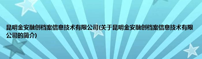 本文关于昆明金安融创档案信息技术有限公司的简介就讲解完毕,希望对大家有所帮助。