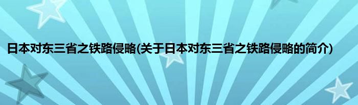 大家好,日本对东三省之铁路侵略,关于日本对东三省之铁路侵略的简介很多人还不知道,现在让我们一起来看看吧!