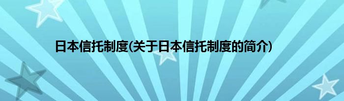 本文关于日本信托制度的简介就讲解完毕,希望对大家有所帮助。