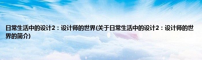 本文关于日常生活中的设计2:设计师的世界的简介就讲解完毕,希望对大家有所帮助。