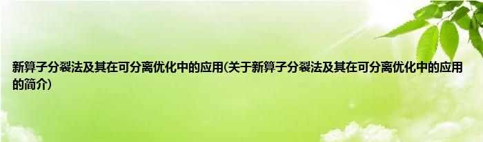 新算子分裂法及其在可分离优化中的应用(关于新算子分裂法及其在可分离优化中的应用的简介)