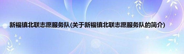 本文关于新福镇北联志愿服务队的简介就讲解完毕,希望对大家有所帮助。