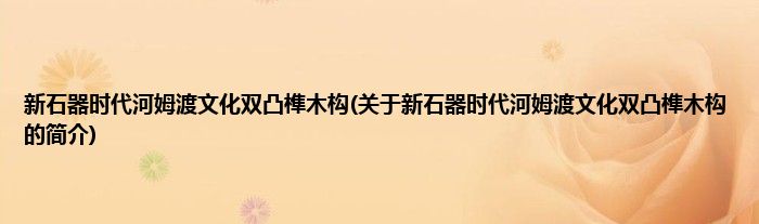本文关于新石器时代河姆渡文化双凸榫木构的简介就讲解完毕,希望对大家有所帮助。
