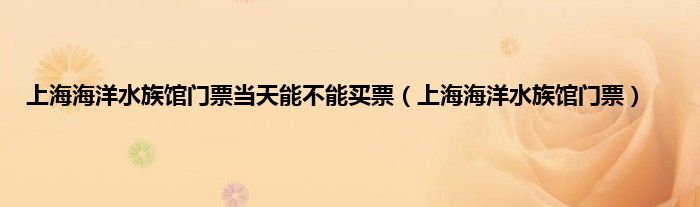 以上就是【上海海洋水族馆门票当天能不能买票,上海海洋水族馆门票】相关内容。