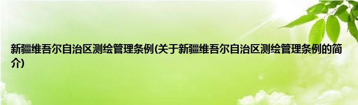 大家好,新疆维吾尔自治区测绘管理条例,关于新疆维吾尔自治区测绘管理条例的简介很多人还不知道,现在让我们一起来看看吧!