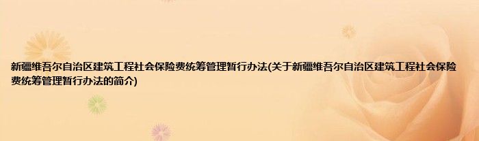 新疆维吾尔自治区建筑工程社会保险费统筹管理暂行办法(关于新疆维吾尔自治区建筑工程社会保险费统筹管理暂行办法的简介)