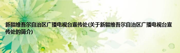 本文关于新疆维吾尔自治区广播电视台宣传处的简介就讲解完毕,希望对大家有所帮助。