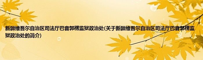 本文关于新疆维吾尔自治区司法厅巴音郭楞监狱政治处的简介就讲解完毕,希望对大家有所帮助。