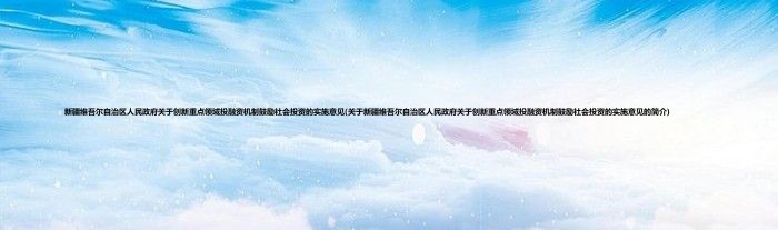 本文关于新疆维吾尔自治区人民政府关于创新重点领域投融资机制鼓励社会投资的实施意见的简介就讲解完毕,希望对大家有所帮助。