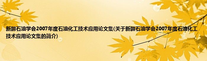 本文关于新疆石油学会2007年度石油化工技术应用论文集的简介就讲解完毕,希望对大家有所帮助。