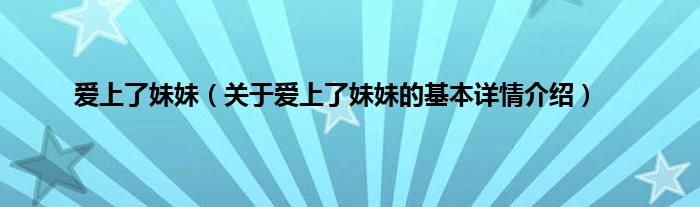 本文关于爱上了妹妹的基本详情介绍就讲解完毕,希望对大家有所帮助。