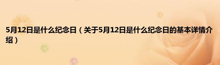 本文关于5月12日是什么纪念日的基本详情介绍就讲解完毕,希望对大家有所帮助。