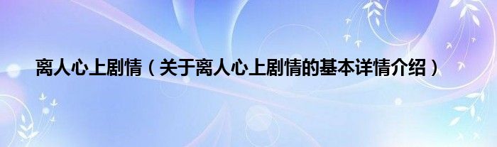 本文关于离人心上剧情的基本详情介绍就讲解完毕,希望对大家有所帮助。