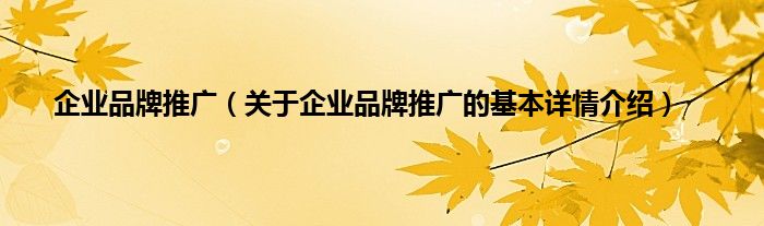 本文关于企业品牌推广的基本详情介绍就讲解完毕,希望对大家有所帮助。