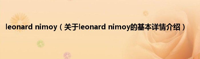 本文关于leonard nimoy的基本详情介绍就讲解完毕,希望对大家有所帮助。