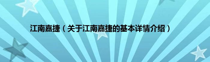 本文关于江南嘉捷的基本详情介绍就讲解完毕,希望对大家有所帮助。