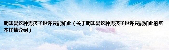 本文关于明知爱这种男孩子也许只能如此的基本详情介绍就讲解完毕,希望对大家有所帮助。