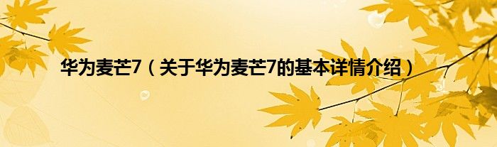 本文关于华为麦芒7的基本详情介绍就讲解完毕,希望对大家有所帮助。