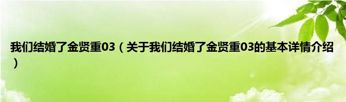 本文关于我们结婚了金贤重03的基本详情介绍就讲解完毕,希望对大家有所帮助。
