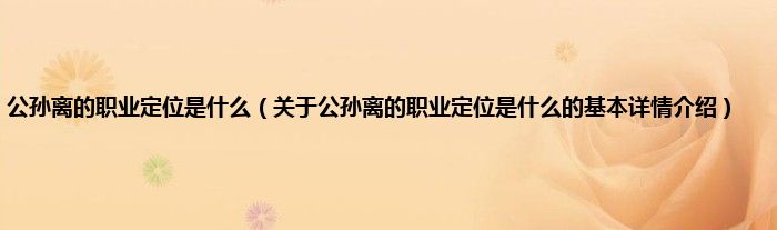本文关于公孙离的职业定位是什么的基本详情介绍就讲解完毕,希望对大家有所帮助。