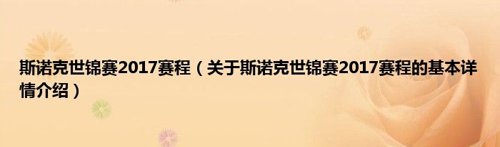 本文关于斯诺克世锦赛2017赛程的基本详情介绍就讲解完毕,希望对大家有所帮助。