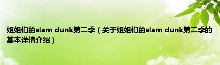本文关于姐姐们的slam dunk第二季的基本详情介绍就讲解完毕,希望对大家有所帮助。