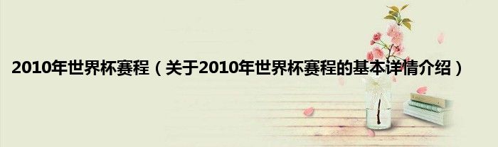 本文关于2010年世界杯赛程的基本详情介绍就讲解完毕,希望对大家有所帮助。
