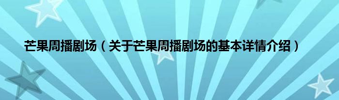 芒果周播剧场(关于芒果周播剧场的基本详情介绍)