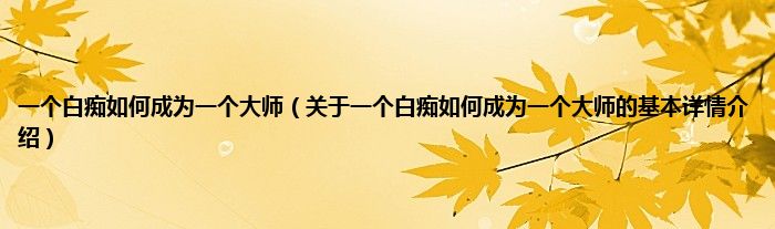 一个白痴如何成为一个大师(关于一个白痴如何成为一个大师的基本详情介绍)