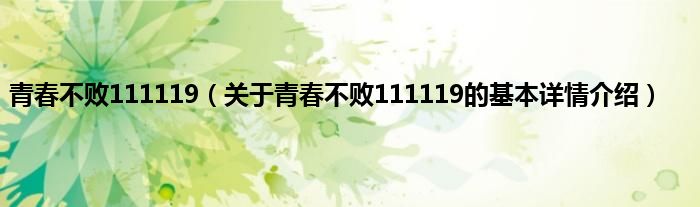 本文关于青春不败111119的基本详情介绍就讲解完毕,希望对大家有所帮助。