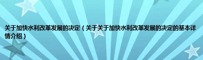 关于加快水利改革发展的决定(关于关于加快水利改革发展的决定的基本详情介绍)