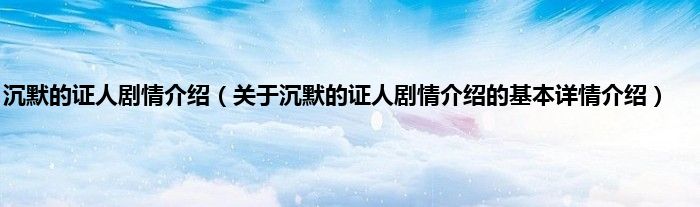 沉默的证人剧情介绍(关于沉默的证人剧情介绍的基本详情介绍)